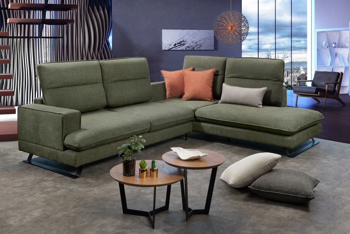 Σαλόνι γωνία σχέδιο “Flexy”, δικής μας κατασκευής, με υλικά άριστης ποιότητας. Διαθέτει μηχανισμούς αναδίπλωσης στα μαξιλάρια της πλάτης, έτσι ώστε να απολαμβάνετε ένα άνετο κάθισμα με στήριξη στο κεφάλι και τον αυχένα. Ο σκελετός είναι κατασκευασμένος από φυσική ξυλεία οξιάς με επεξεργασία αποξήρανσης.